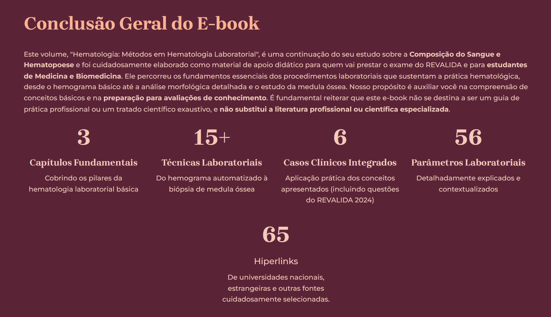 Este e-book (Hematologia: Métodos em Hematologia Laboratorial – Volume 1) foi pensado para quem quer aprender hemograma, esfregaço de sangue periférico e estudo da medula óssea, com leitura objetiva e aplicação clínica. Traz casos clínicos comentados, questões de múltipla escolha, além de questões recentes do REVALIDA com gabarito justificado e glossário essencial para consulta rápida. Ao receber o comprovante de pagamento enviarei o e-book em até 24 horas.