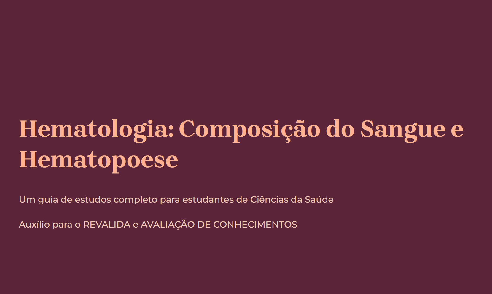 Contem toda a matéria sobre a Composição do Sangue e Hematopoese, além de dezenas de hiperlinks conectando o leitor a sites selecionados e igualmente didáticos. Proporcionando uma dinâmica bastante produtiva.
